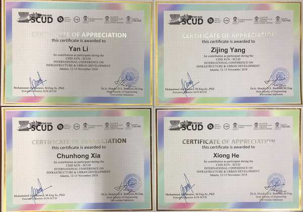 云南大学建筑与规划学院李燕副教授、杨子江副教授以及研究生夏春红、何雄的论文及学术报告从参会的67份论文和学术报告中脱颖而出,分别获得“最佳会议贡献奖”(Certificate of Appreciation),其学术水平得到了参会学者的高度认可,对建筑与规划学院“双一流”建设起到了积极的推动作用。