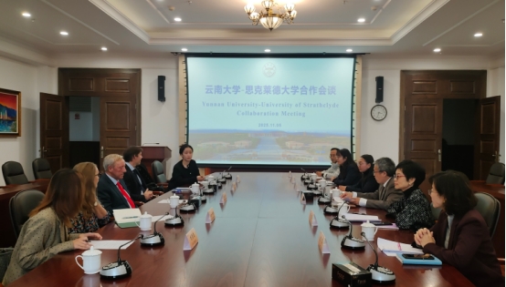 会上,杨绍军副校长对英国思克莱德大学副校长Prof. Alexander Galloway一行4人的来访表示热烈欢迎,高度肯定了两校长期以来在合作办学项目中取得的丰硕成果。他表示,云南大学始终重视国际交流合作,思克莱德大学作为优质合作伙伴,双方在学科共建、人才联合培养等方面的合作基础扎实,希望以此次访问为契机,进一步拓宽合作维度、深化合作内涵。